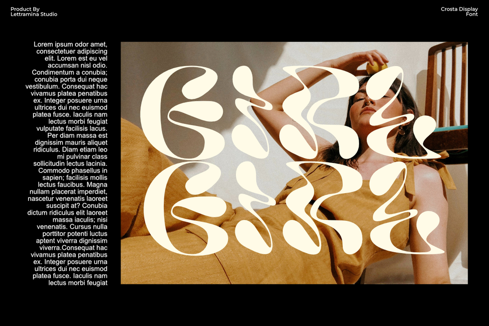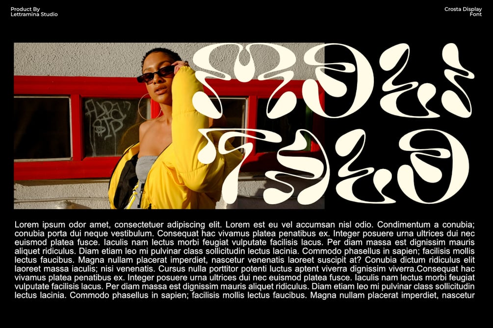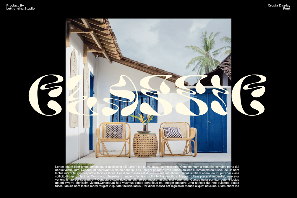 This font is best suited for creative projects such as posters, album covers, alternative branding, fashion editorials, or digital art. Crosta is not intended for long-form readability but shines when used in short, impactful text and bold typographic statements.