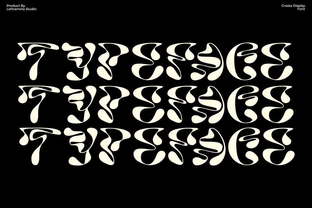 With its unconventional and expressive style, Crosta is perfect for designers seeking a daring, artistic, and distinctive typographic voice.